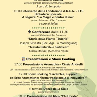 Un’intera giornata tra profumi, colori, tessuti e sapori naturali per festeggiare la 20° edizione di Aromatika!